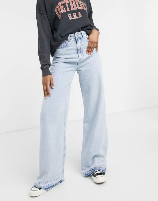 Stradivarius 90s super wide leg jeans in light blue