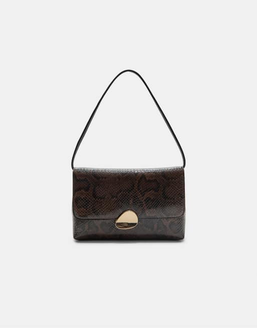 Stradivarius Animal print bag with asymmetric metal clasp in brown