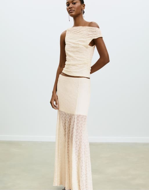 Stradivarius Asymmetric lace top in vanilla