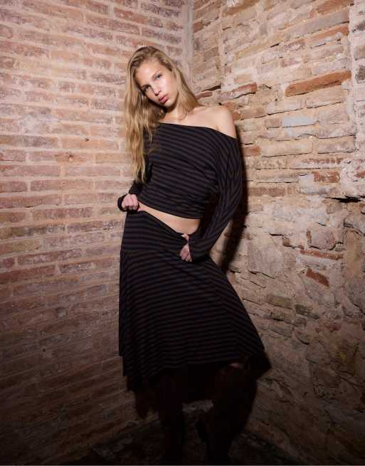 Stradivarius Asymmetric striped t-shirt in navy blue