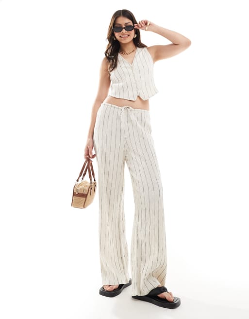 Stradivarius boxy pinstripe waistcoat & trouser co-ord in natural
