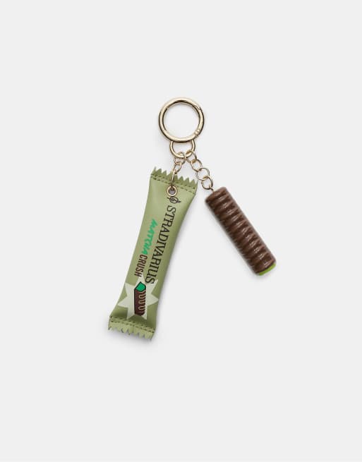 Stradivarius Chocolate matcha charm key ring in brown