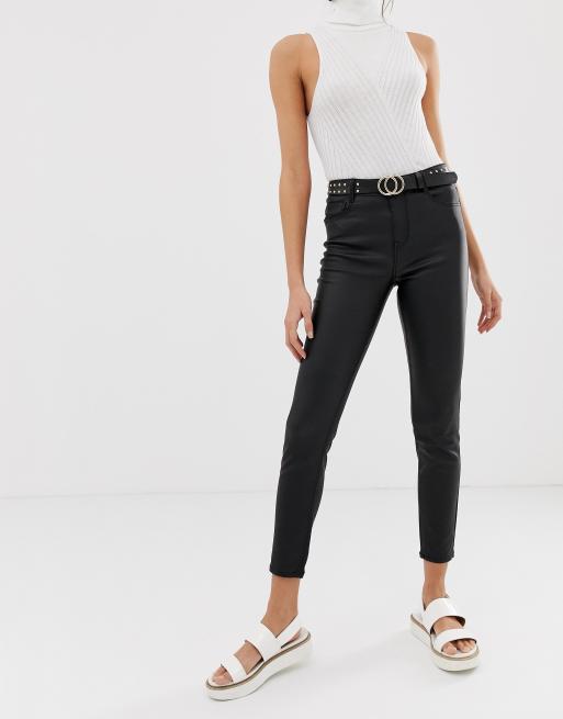 Stradivarius Coated Denim Skinny Jeans in black