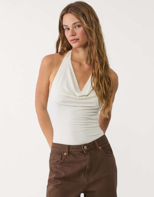 Stradivarius cowl neck bodysuit in ecru