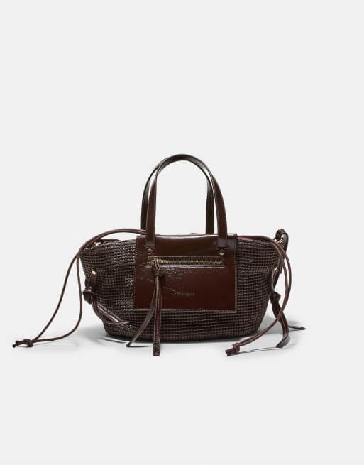 Stradivarius Crochet-effect basket crossbody bag in brown