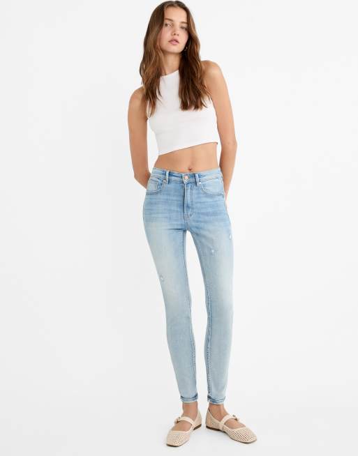 Stradivarius D07 regular waist skinny jeans in medium light blue denim