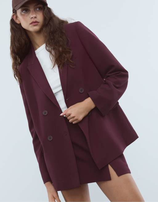 Stradivarius Double-breasted buttoned blazer in burgundy
