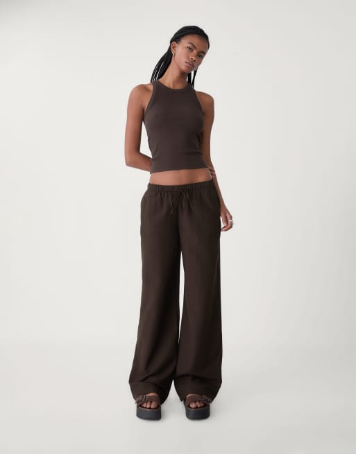 Stradivarius drawstring trousers in brown