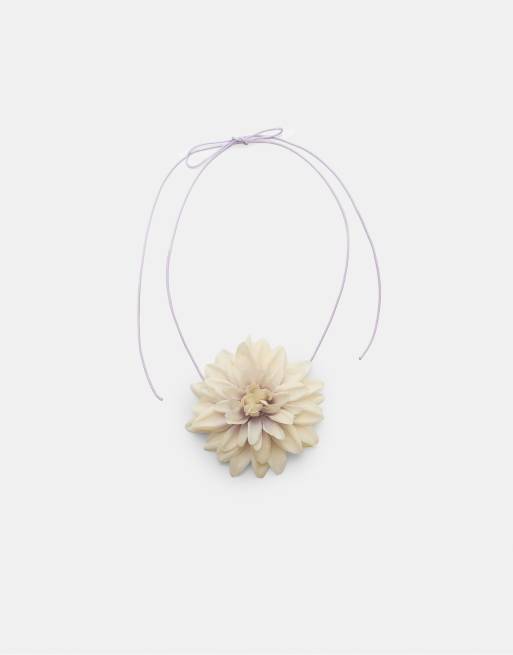 Stradivarius Fabric flower choker in white