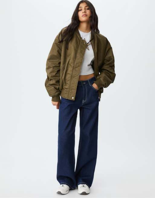 Stradivarius Faded-effect bomber jacket in olive green