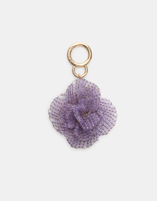 Stradivarius Flower beaded charm key ring in lilac