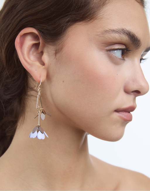 Stradivarius Flower dangle earrings in ecru