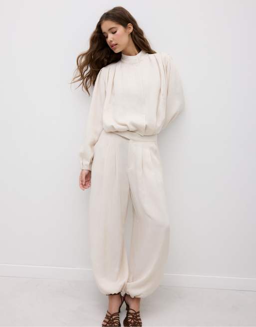 Stradivarius flowing pleated co-ord in ecru