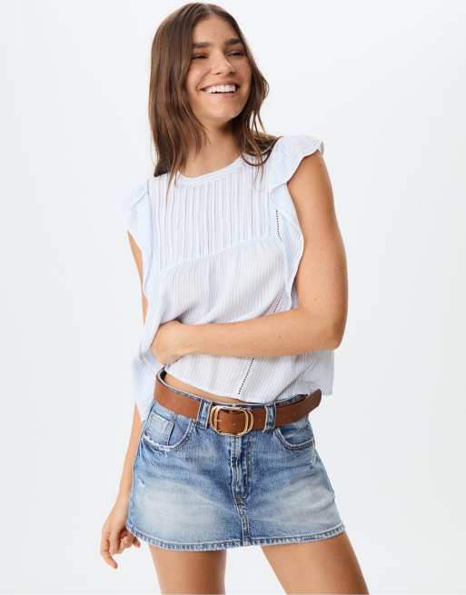 Stradivarius Flowing ruffled blouse in sky blue