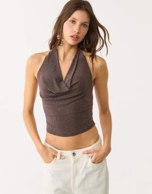 Stradivarius glitter halter top in brown