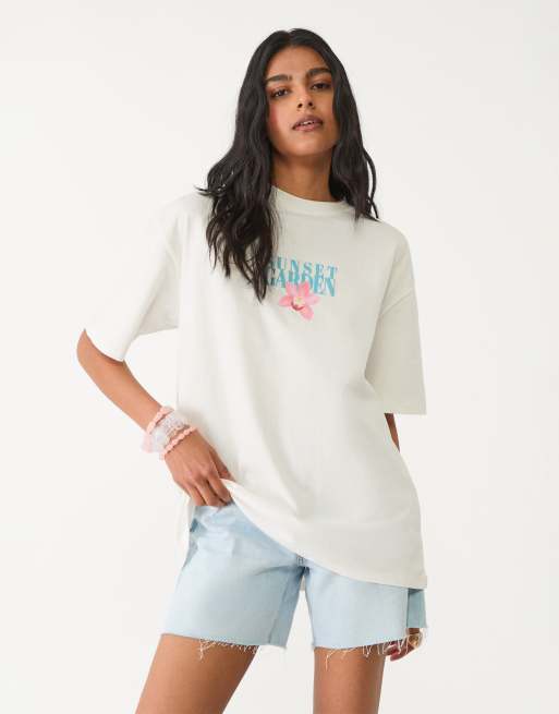 Stradivarius heavy cotton graphic t-shirt in ecru