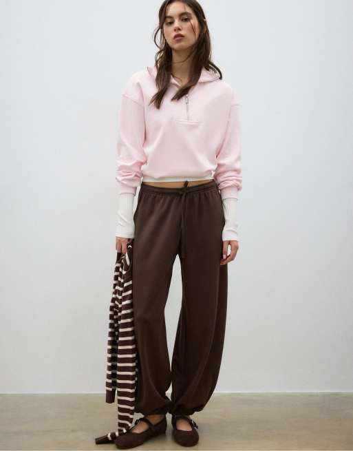 Stradivarius High-neck zip-up sweatshirt in salmon pink