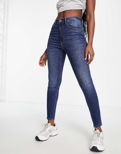 Stradivarius high waist skinny push up jean with rips in medium blue