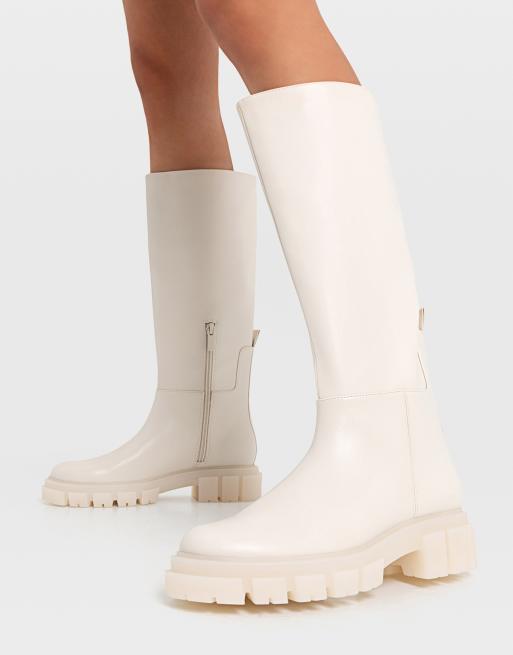 Stradivarius knee boots with chunky sole in cream