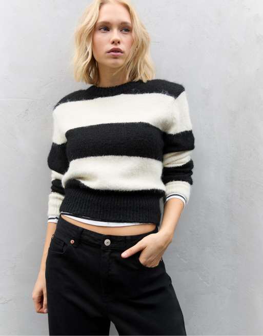 Stradivarius Knit sweater with shoulder pads in black