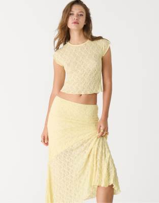 Stradivarius lace top with cap sleeves in pastel yellow