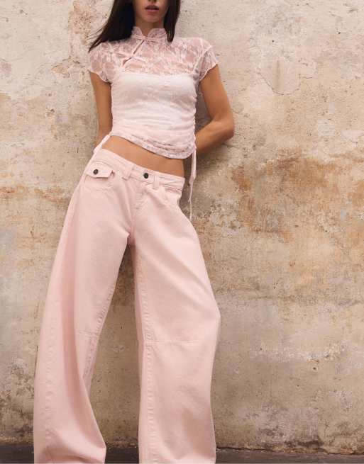 Stradivarius Low-rise barrel jeans in pastel pink
