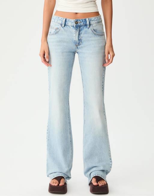Stradivarius Low-waist flare jeans in medium light blue denim