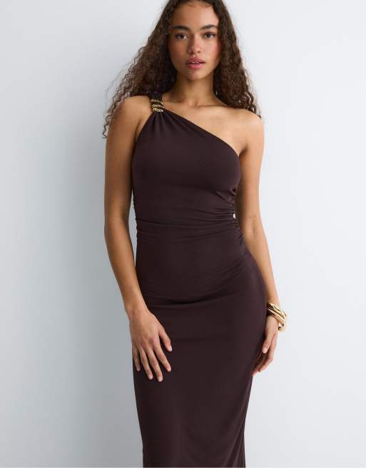 Stradivarius Metallic detail dress in brown
