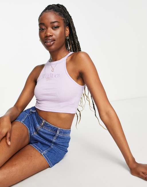 Stradivarius Miami Beach embroidered tank top in lilac
