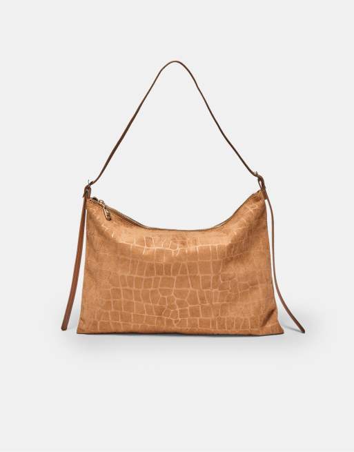 Stradivarius Mini soft touch shoulder bag with zips in brown