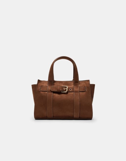Stradivarius Mini tote bag with buckle in brown