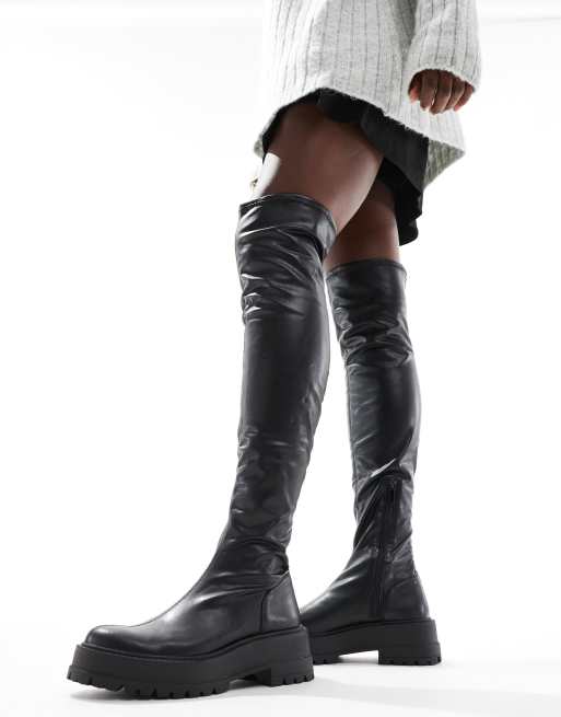 Stradivarius over the knee chunky boot in black