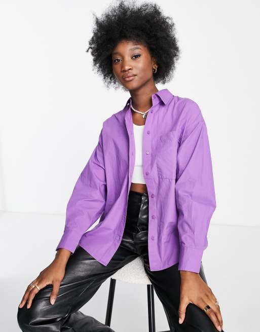 Stradivarius oversized cotton shirt in purple