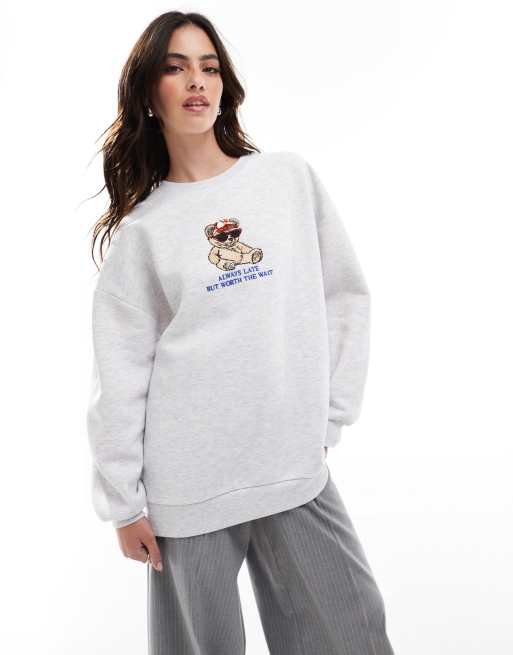 Stradivarius oversized teddy sweatshirt in grey