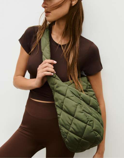 Stradivarius Padded fabric bag in khaki