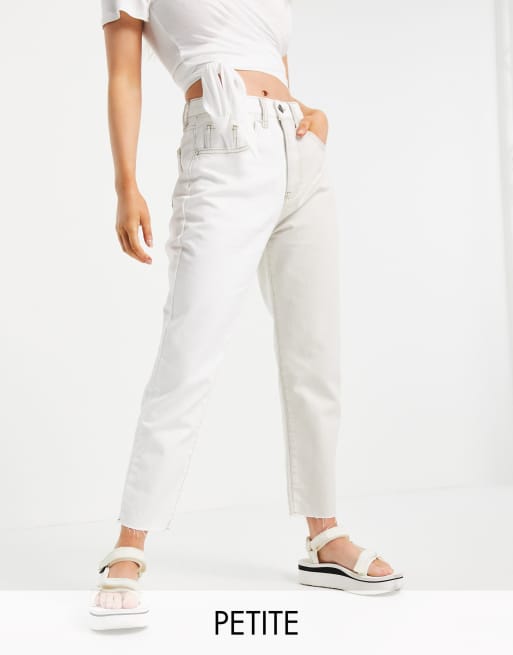 Stradivarius Petite contrast two tone slim mom jean in ecru