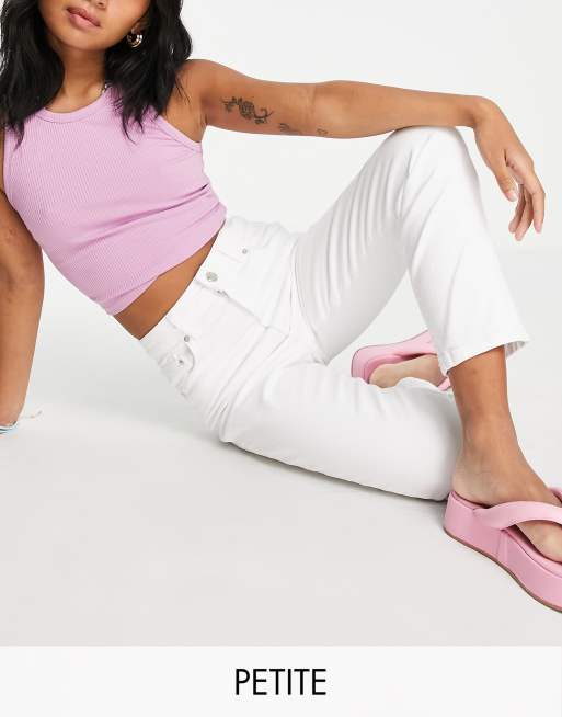 Stradivarius Petite cotton slim mom jean with stretch in ecru - CREAM