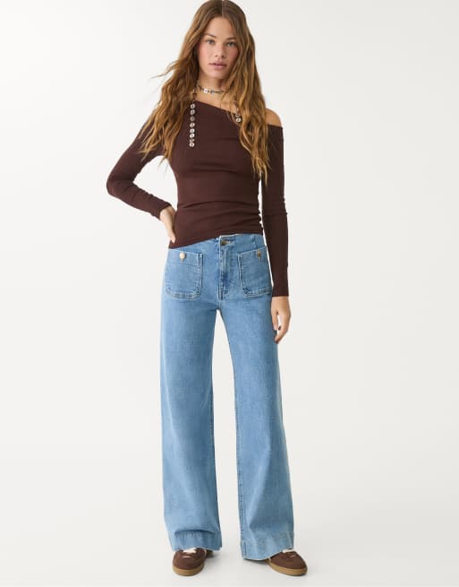 Stradivarius Petite d77 minimalist jeans with pockets in light blue