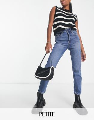 Stradivarius Petite slim mom jean with stretch and rip in authentic blue