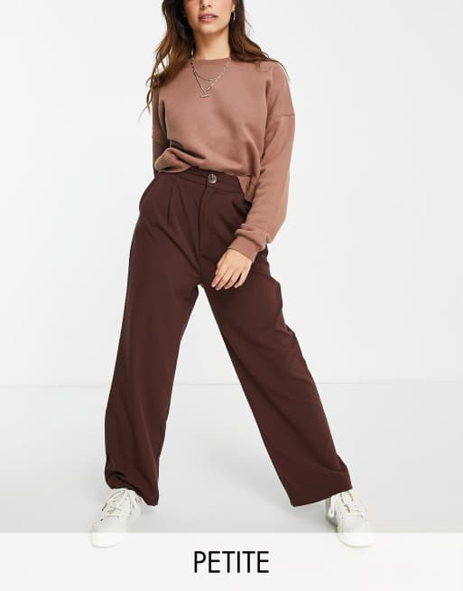 Stradivarius Petite wide leg relaxed dad trousers in chocolate brown
