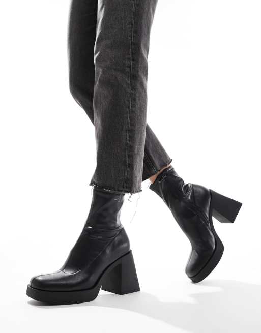 Stradivarius platform heel ankle boot in black