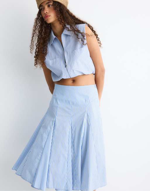 Stradivarius Poplin asymmetric midi skirt in blue