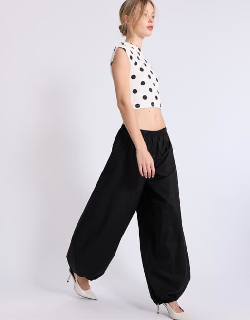 Stradivarius Poplin volume trousers in black
