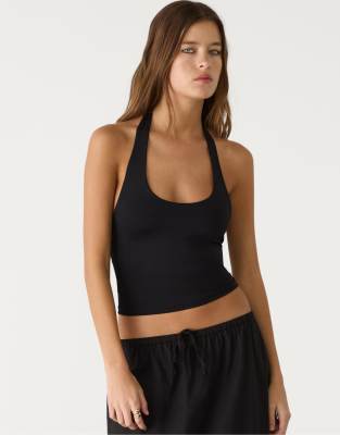 Stradivarius racer neck top in black