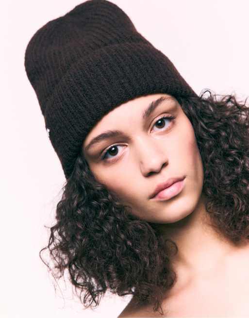 Stradivarius Ribbed cap with plate in brown