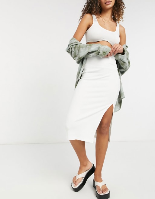 Stradivarius ribbed polo and pencil skirt co-ord in ecru