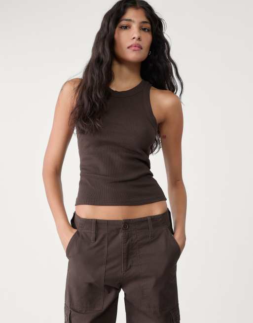 Stradivarius ribbed racer vest top in brown