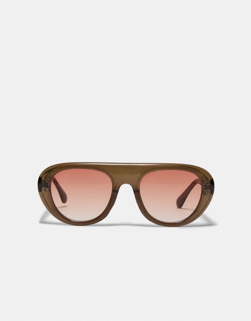 Stradivarius Round resin sunglasses in khaki