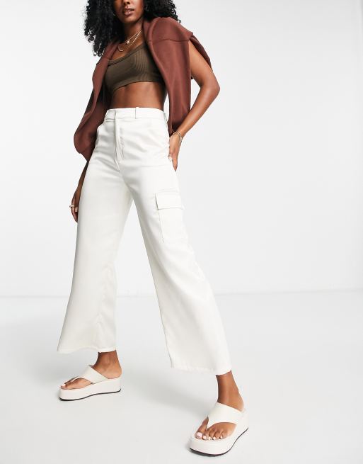 Stradivarius satin tailored cargo trouser in ecru
