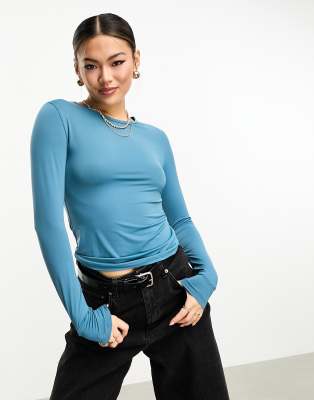 Stradivarius sculpt long sleeve top in petrol blue